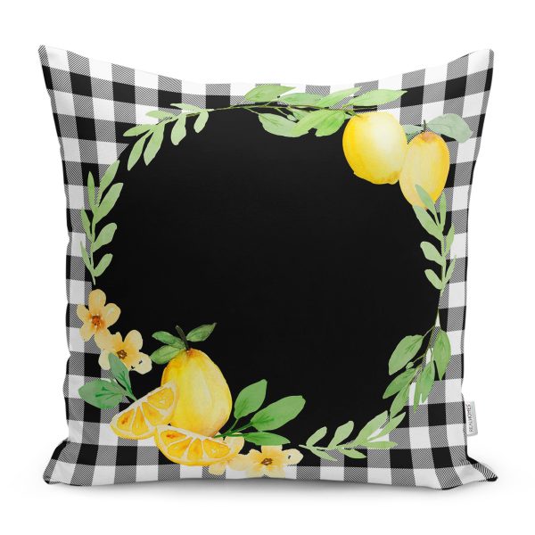Siyah Beyaz Ekose Limon Motifli Modern Yastık Kırlent Kılıfı