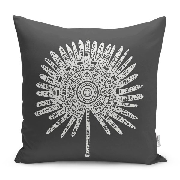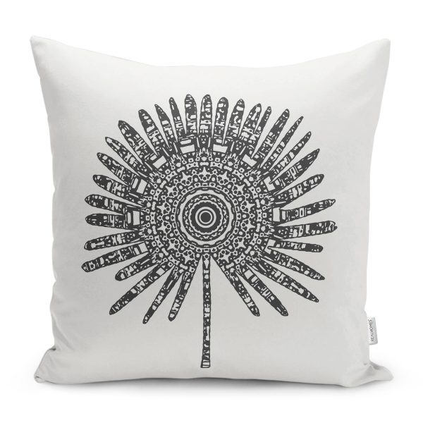 Siyah Beyaz Çiçek Tasarımlı Modern Yastık Kırlent Kılıfı