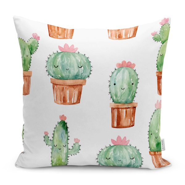 Minimal Kaktüs Tasarımlı Yastık Kırlent Kılıfı