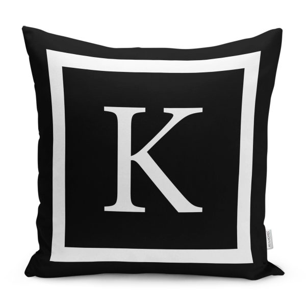 Siyah Zemin Beyaz Çerçeveli K Harfi Dijital Baskılı Kırlent Kılıfı
