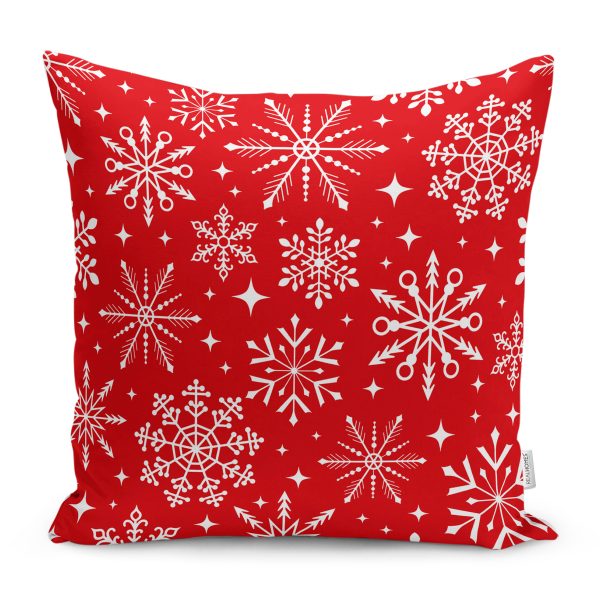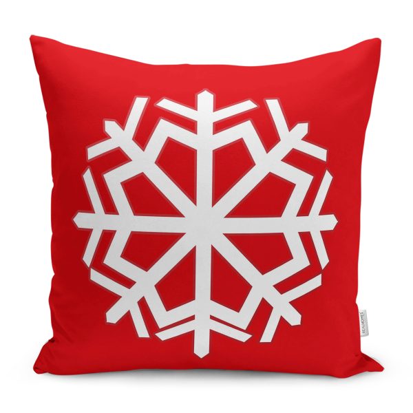 Kırmızı Tekli Kar Tanesi Yılbaşı Temalı Dekoratif Kırlent Kılıfı