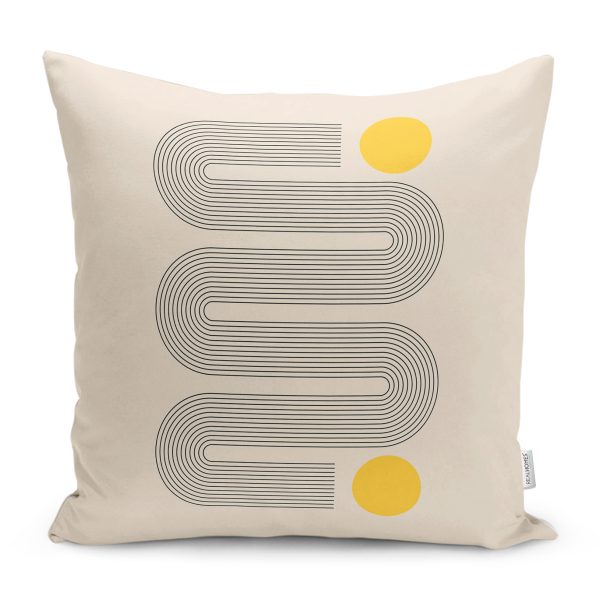 Krem Renkli Onedraw Temalı Modern Yastık Kırlent Kılıfı