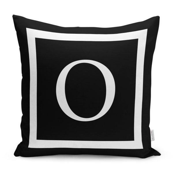 Siyah Zemin Beyaz Çerçeveli O Harfi Dijital Baskılı Kırlent Kılıfı