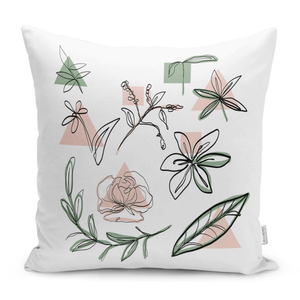 Oneline Gül & Yaprak Çizimli Dijital Baskılı Yastık Kırlent Kılıfı