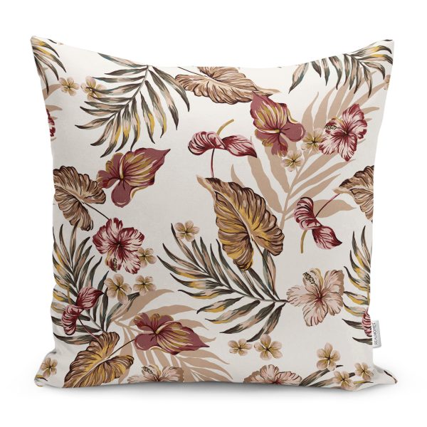 Kuru Tropik Yaprak Motifli Dijital Baskılı Yastık Kırlent Kılıfı
