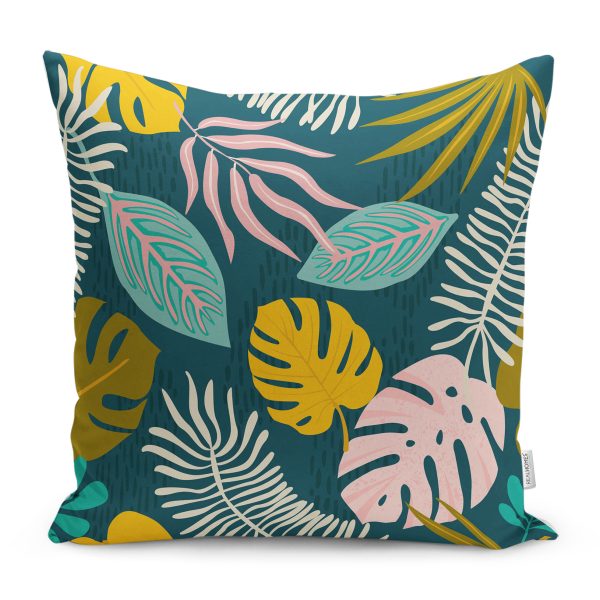Özel Tasarım Tropik Yaprak Çizimli Yastık Kırlent Kılıfı
