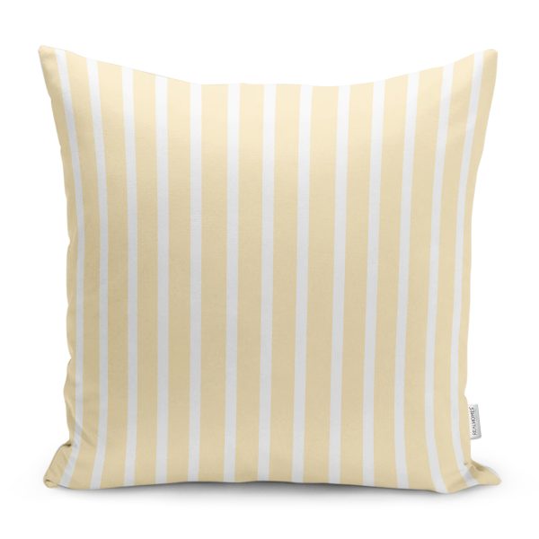 Sarı Beyaz Düz Çizgili Özel Tasarım Dekoratif Yastık Kırlent Kılıfı