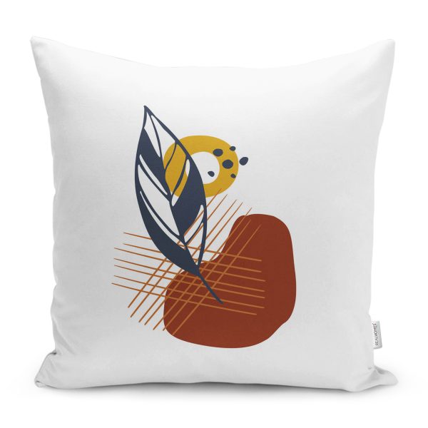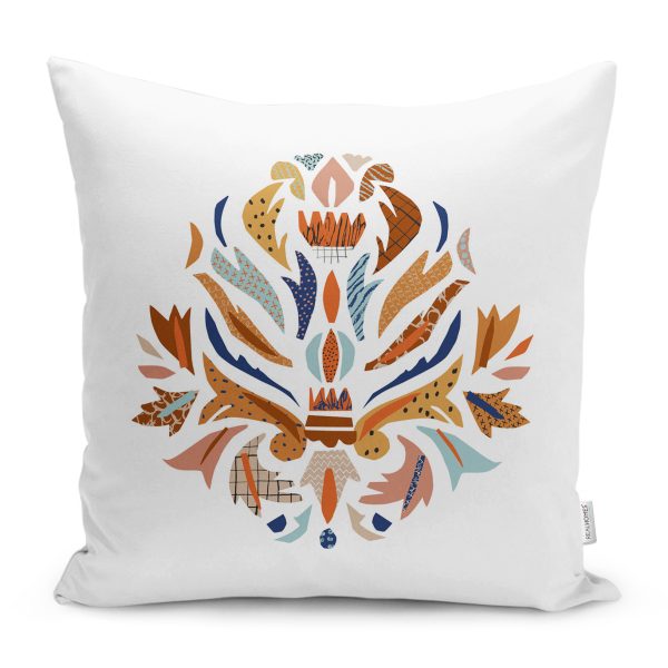 Beyaz Zemin Onedraw Geometrik Çizimli Yaprak Motifli Kırlent Kılıfı