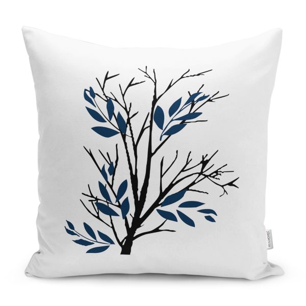 Beyaz Zemin Dal Tasarımlı Dekoratif Yastık Kırlent Kılıfı