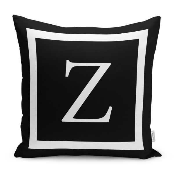 Siyah Zemin Beyaz Çerçeveli Z Harfi Dijital Baskılı Kırlent Kılıfı