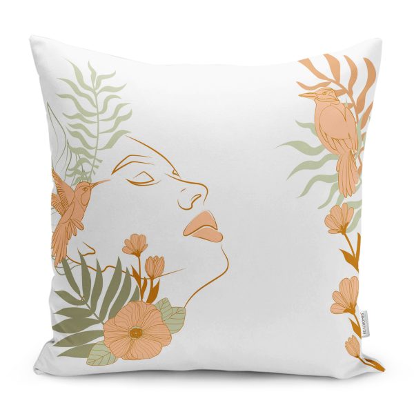 Çiçek Sarkıları Kadın Sureti Modern Yastık Kırlent Kılıfı