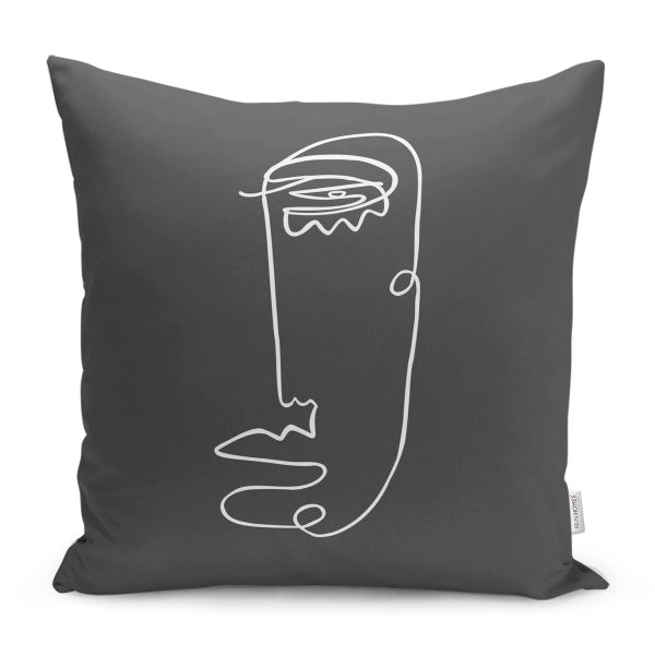 Koyu Füme Oneline Yüz Tasarımlı Yastık Kırlent Kılıfı