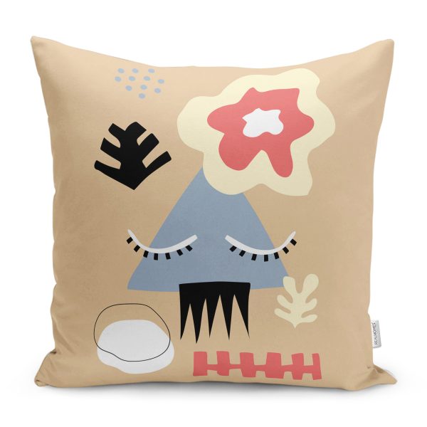 Krem Zemin Onedraw Çizimli Modern Yastık Kırlent Kılıfı