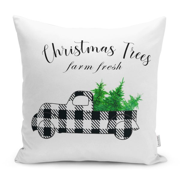 Christmas Temalı Ekose Arabalı Modern Yastık Kırlent Kılıfı
