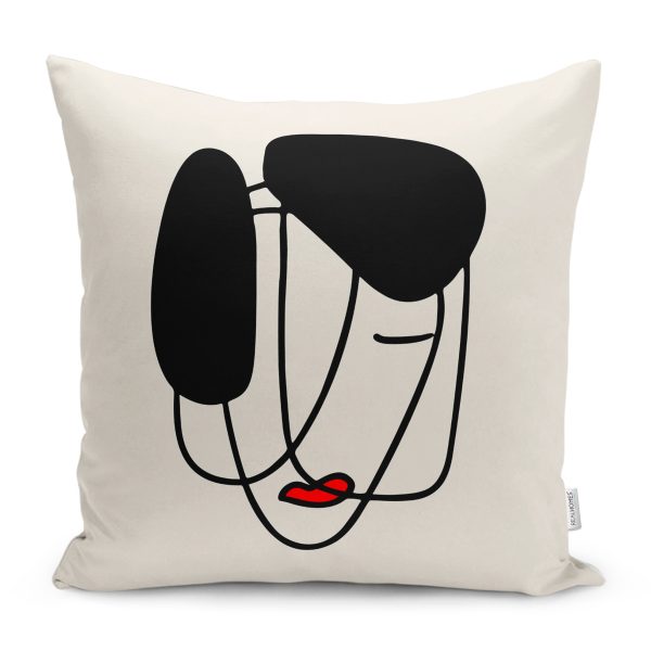 Oneline Siyah Beyaz Kadın Figürlü Özel Tasarım Yastık Kırlent Kılıfı