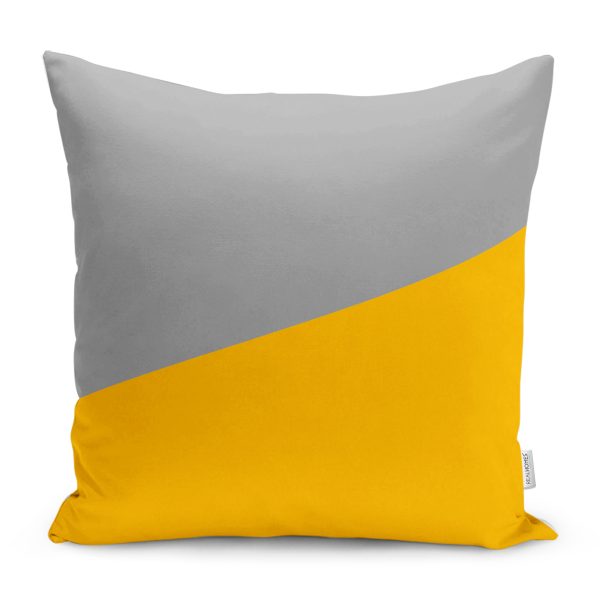 Sarı & Gri Düz Renkli Dijital Baskılı Yastık Kırlent Kılıfı