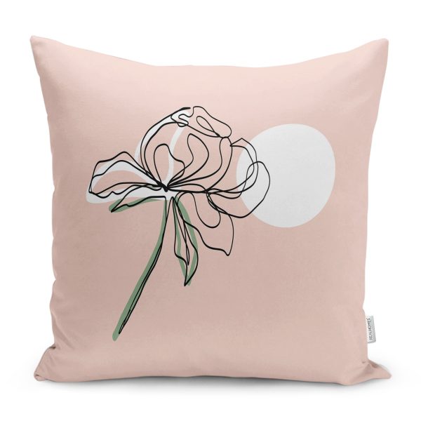 Pembe Zemin Oneline Gül Çizimli Modern Yastık Kırlent Kılıfı