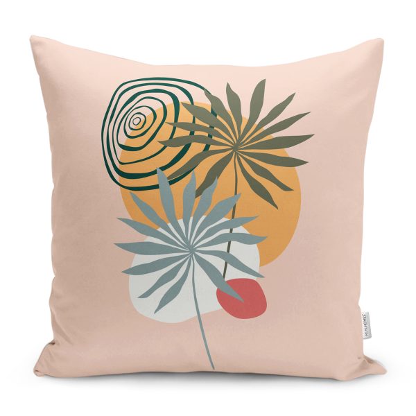 Pudra Zemin Tropik Yaprak Tasarımlı Yastık Kırlent Kılıfı