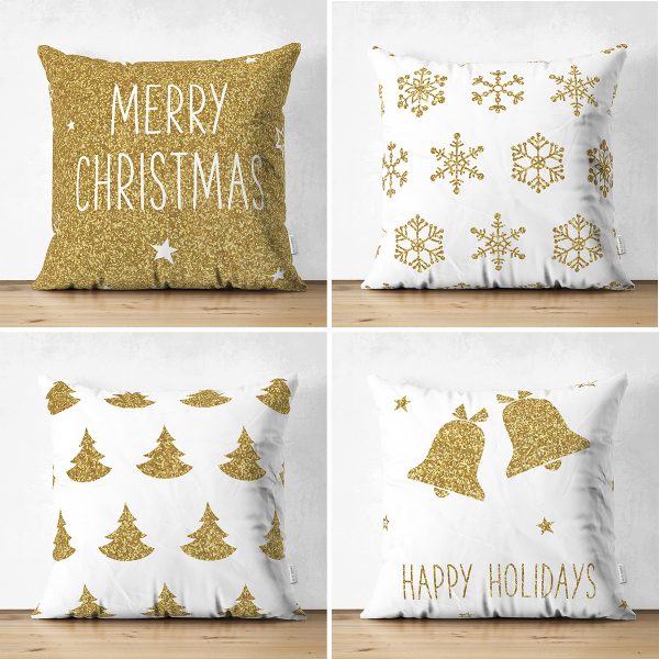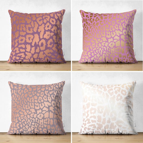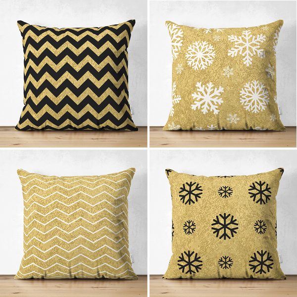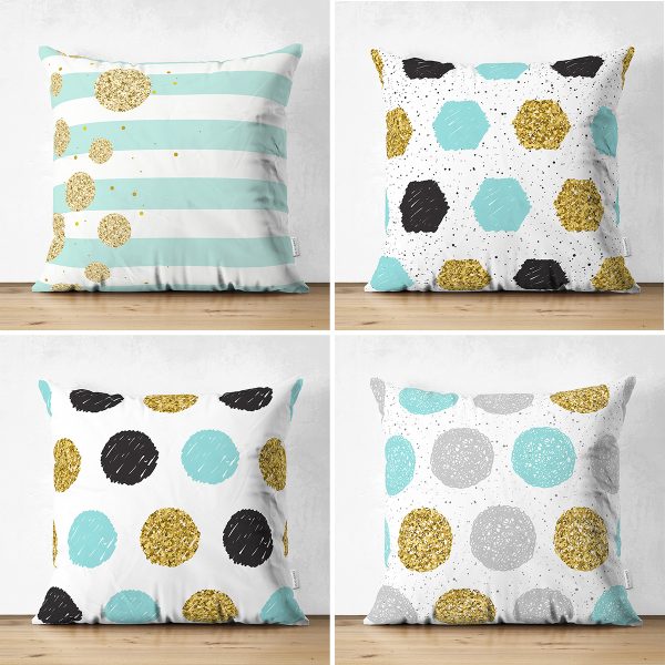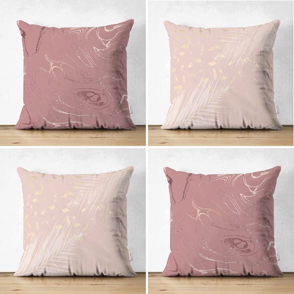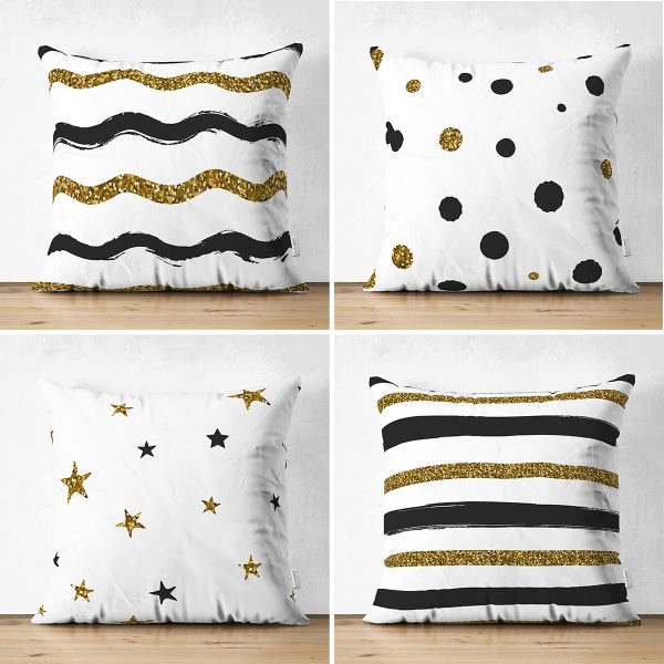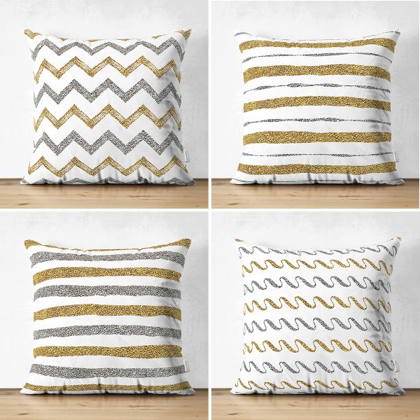 4’lü Çift Taraflı Özel Gold Tasarımlı Dijital Baskılı Modern Süet Yastık Kırlent Kılıf Seti