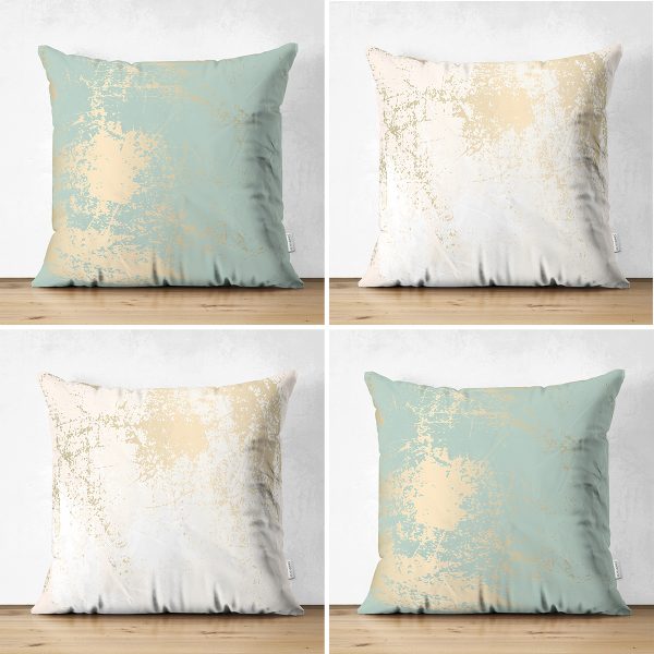 4’lü Çift Taraflı Renkli Zemin Üzerinde Gold Detaylı Mermer Desenli Modern Süet Yastık Kırlent Kılıf Seti