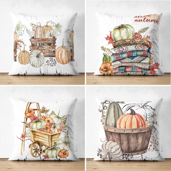 4’lü Çift Taraflı Sepetli Kabak Konsept Dijital Baskılı Modern Süet Yastık Kırlent Kılıfı