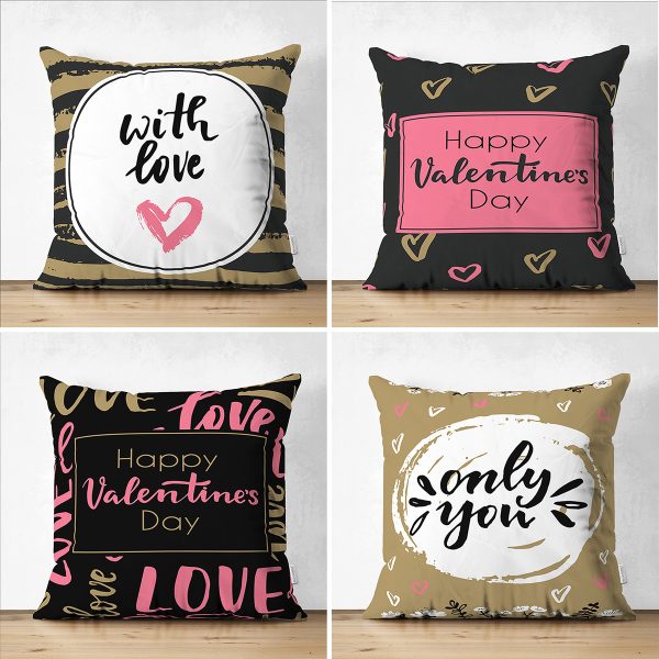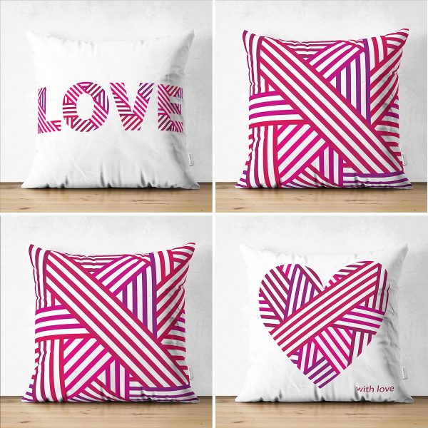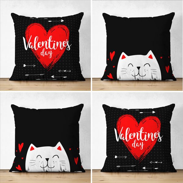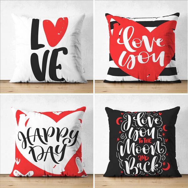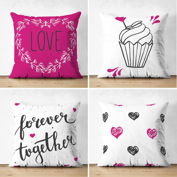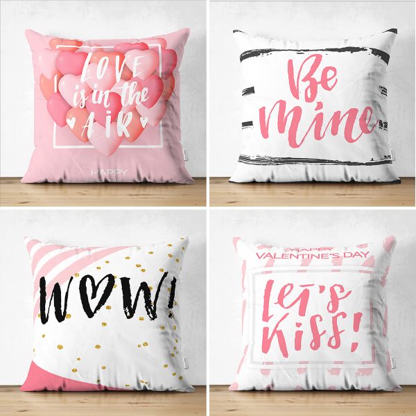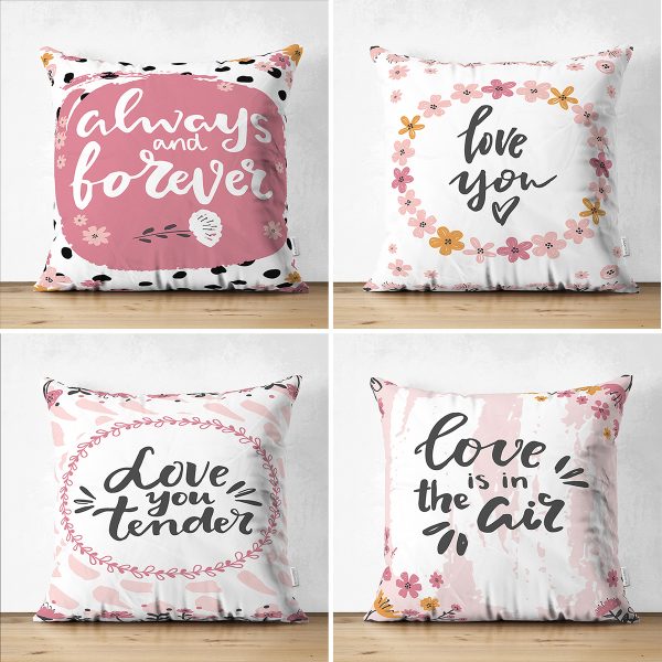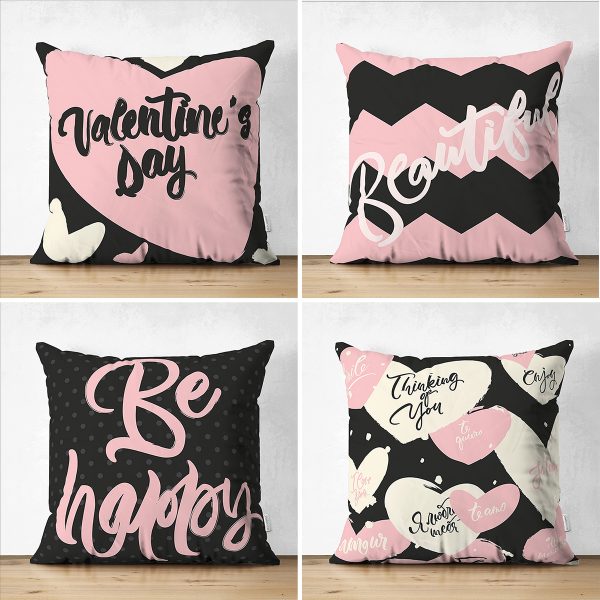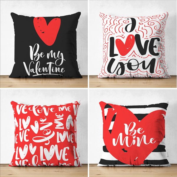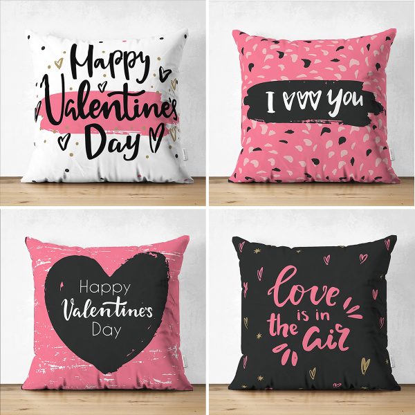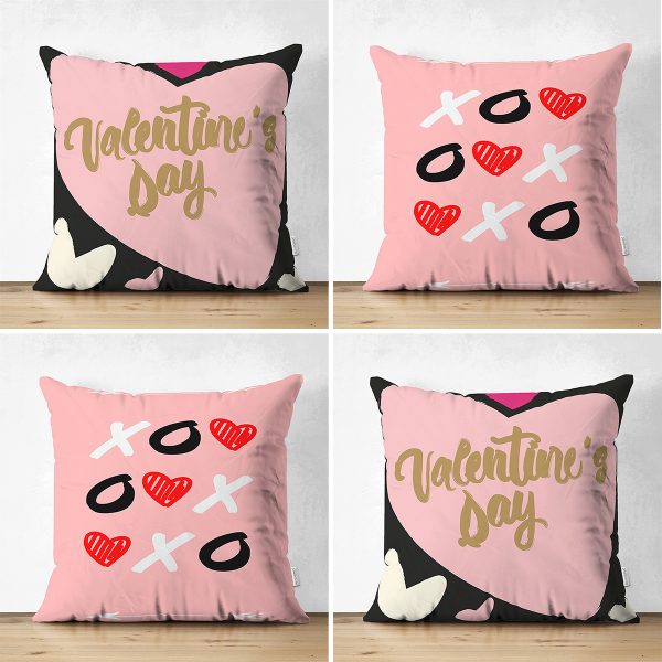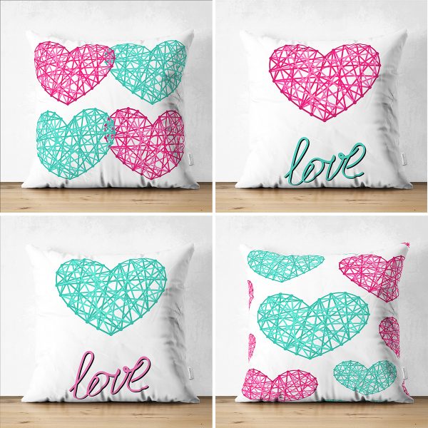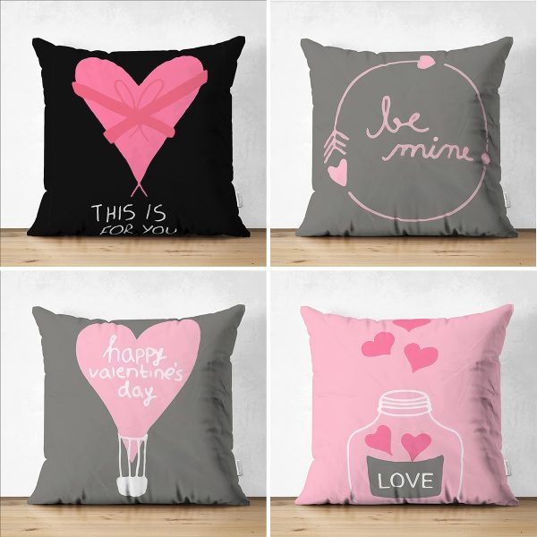 4’lü Çift Taraflı Sevgililer Günü Konseptli Özel Tasarım Modern Süet Kombin Yastık Kırlent Kılıf Seti