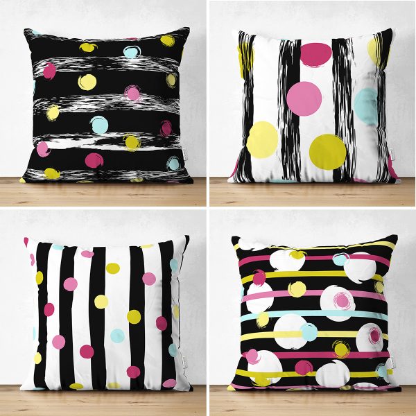 4’lü Çift Taraflı Renkli Puantiye Motifli Dijital Baskılı Modern Süet Yastık Kırlent Kılıf Seti