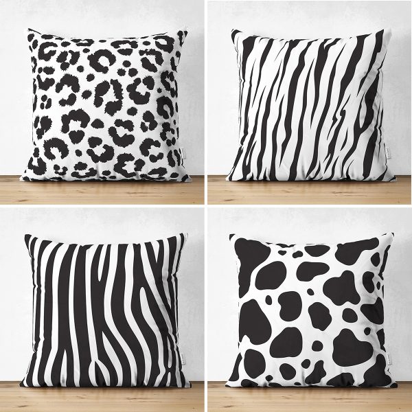 4’lü Çift Taraflı Beyaz Zemin Üzerinde Zebra Desenli Modern Süet Yastık Kırlent Kılıf Seti