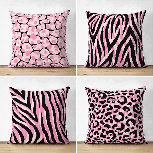 4’lü Çift Taraflı Renkli Zemin Üzerinde Zebra Desenli Modern Süet Yastık Kırlent Kılıf Seti