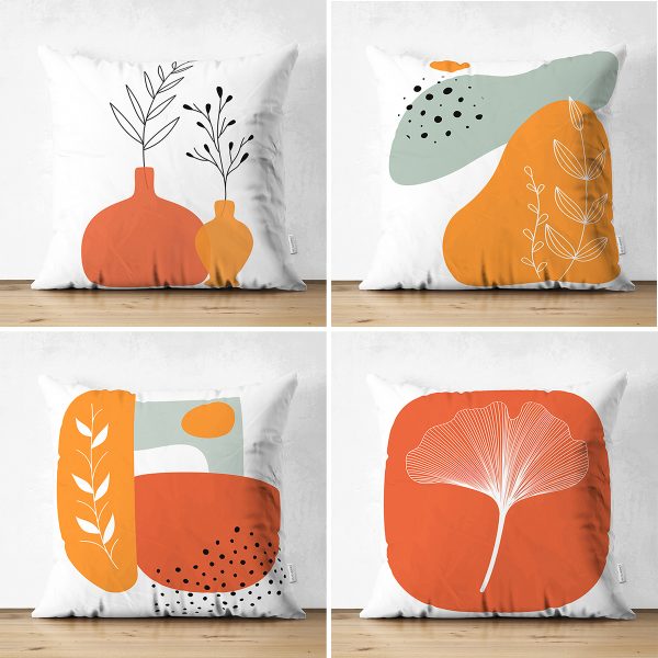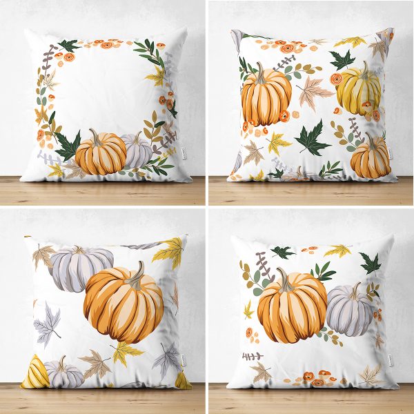4’lü Çift Taraflı Kabak Desen Dijital Baskılı Modern Süet Yastık Kırlent Kılıfı