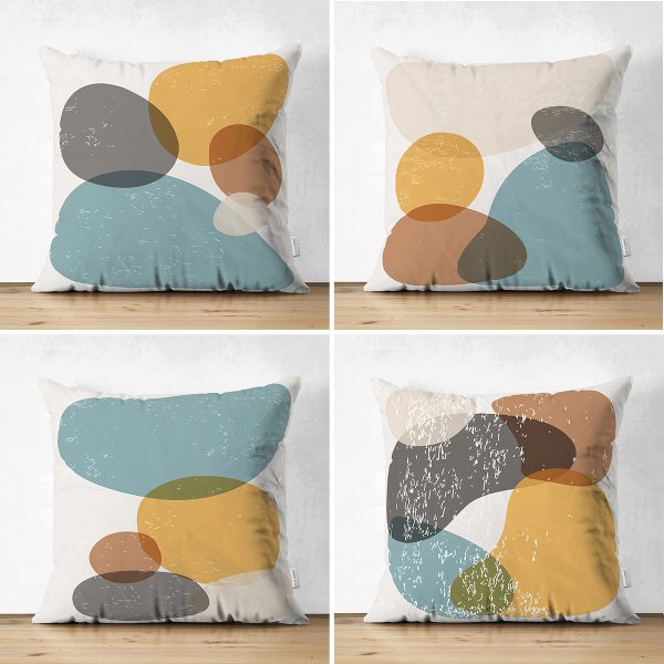 4’lü Çift Taraflı Renkli Zemin Üzerinde Geometrik Çizimli Modern Süet Yastık Kırlent Kılıf Seti