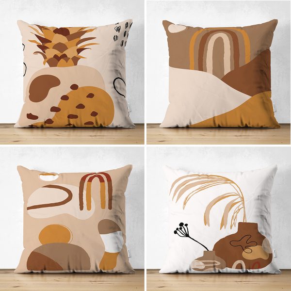 4’lü Çift Taraflı Renkli Bohem Yaprak Çizimli Özel Tasarım Modern Süet Yastık Kırlent Kılıfı Seti