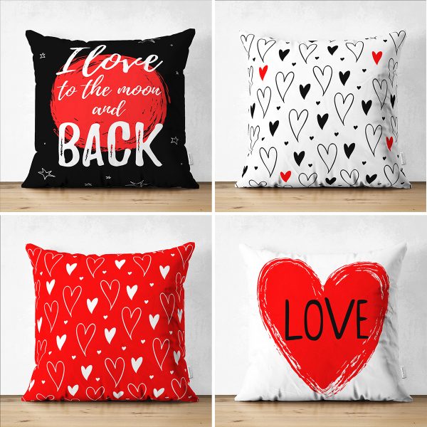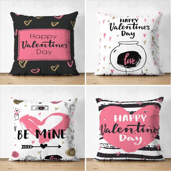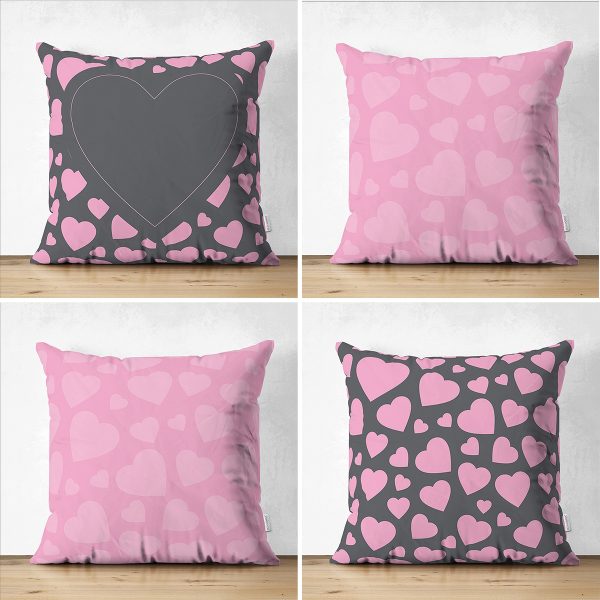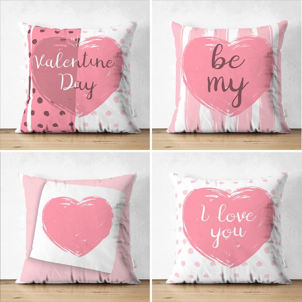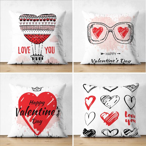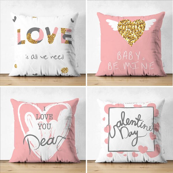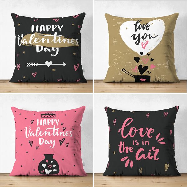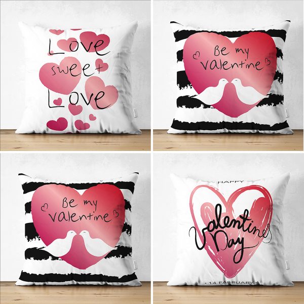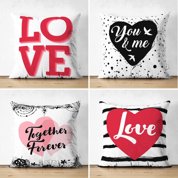 4’lü Çift Taraflı Sevgililer Günü Konseptli Özel Tasarım Modern Süet Kombin Yastık Kırlent Kılıf Seti