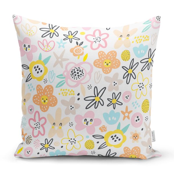 Rengarenk Çiçek Desenli Dijital Baskılı Özel Tasarım Modern Yastık Kırlent Kılıfı