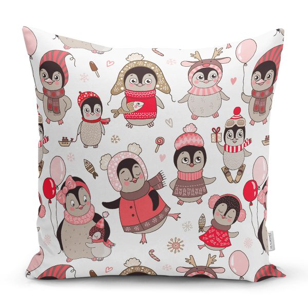 Realhomes Sevimli Penguen ve Yavruları Özel Tasarım Dijital Baskılı Modern Yastık Kırlent Kılıfı