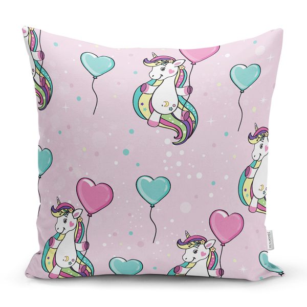 Realhomes Balonlu Unicorn Motifli Özel Tasarım Dijital Baskılı Modern Yastık Kırlent Kılıfı