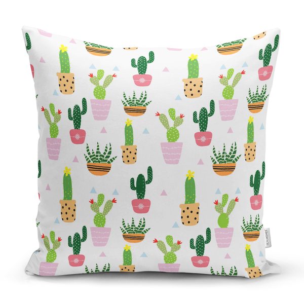 Realhomes Minik Kaktüs Tasarımlı Dijital Baskılı Modern Yastık Kırlent Kılıfı