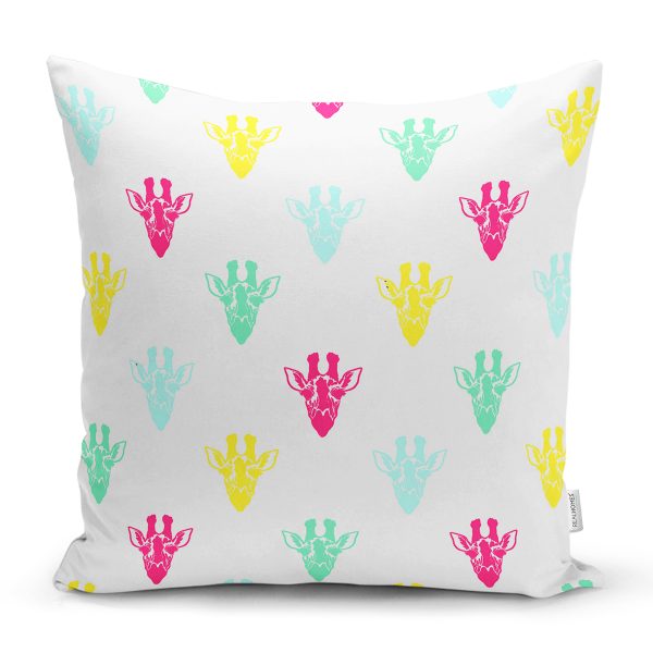 Renkli Zürafa Motifli Dijital Baskılı Özel Tasarım Modern Yastık Kırlent Kılıfı