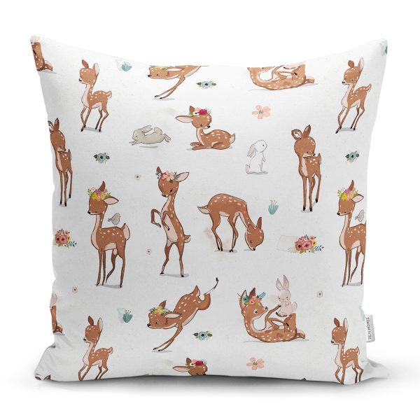 Sevimli Ceylan Ve Tavşan Motifli Dijital Baskılı Özel Tasarım Modern Yastık Kırlent Kılıfı