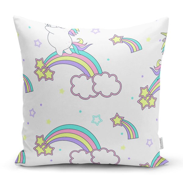 Gökkuşağı Ve Unicorn Desenli Dijital Baskılı Özel Tasarım Modern Yastık Kırlent Kılıfı