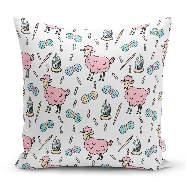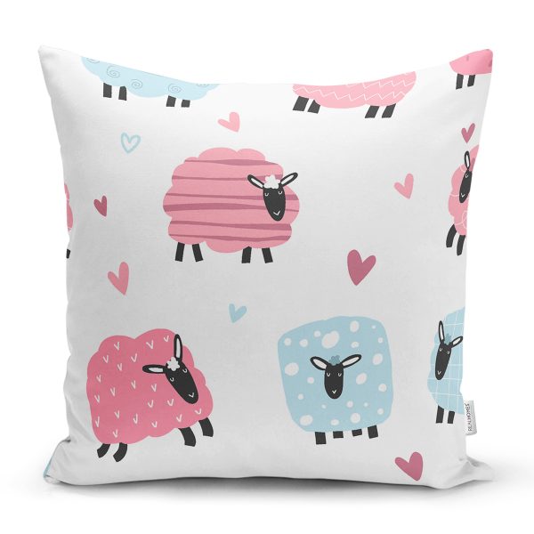 Sevimli Pembe Koyuna Motifli Dijital Baskılı Özel Tasarım Modern Yastık Kırlent Kılıfı