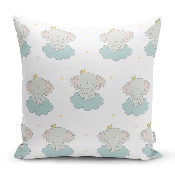 Bulut Üzerinde Fil Tasarımlı Dijital Baskılı Özel Tasarım Modern Yastık Kırlent Kılıfı