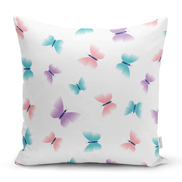 Rengarenk Kelebek Motifli Dijital Baskılı Özel Tasarım Modern Yastık Kırlent Kılıfı