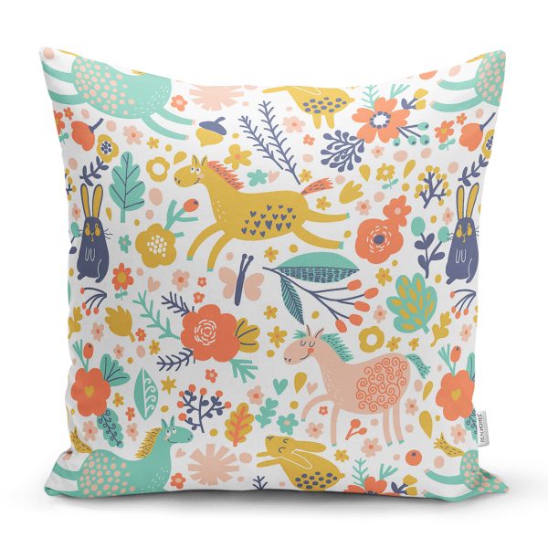 Rengarenk Orman Hayvanları Desenli Dijital Baskılı Özel Tasarım Modern Yastık Kırlent Kılıfı