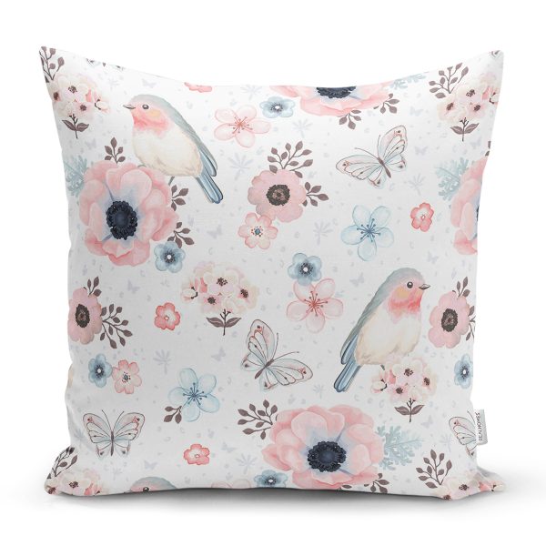 Kuş Ve Çiçek Desenli Dijital Baskılı Özel Tasarım Modern Yastık Kırlent Kılıfı