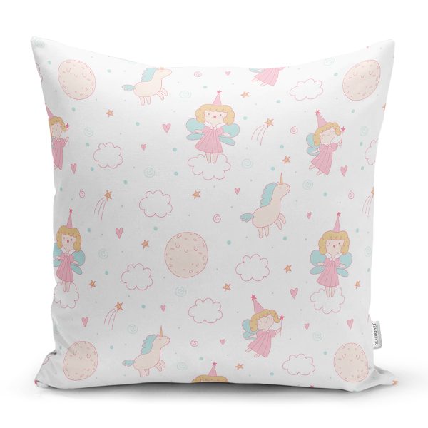 Pembe Peri Kızı Ve Unicorn Desenli Dijital Baskılı Özel Tasarım Modern Yastık Kırlent Kılıfı