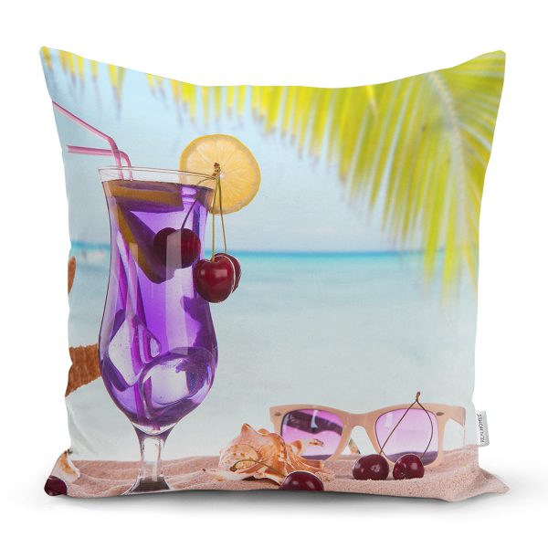 Kokteyl ve Sahil Özel Tasarım Modern Dijital Baskılı Yastık Kırlent Kılıfı