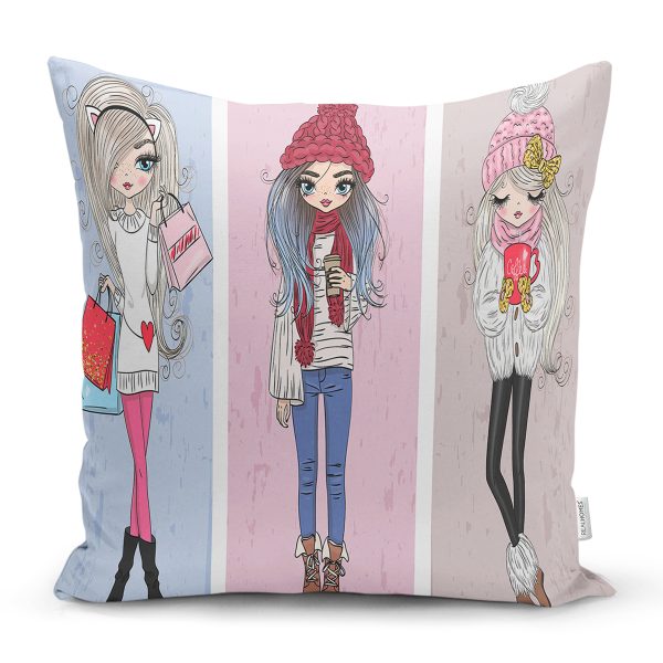 Fashion Girls Özel Tasarım Dijital Baskılı Modern Yastık Kırlent Kılıfı