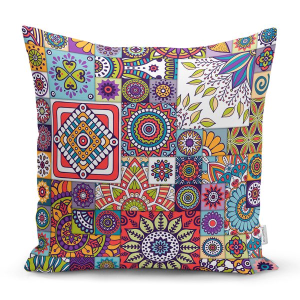 Realhomes Renkli Mozaik Desenli Dijital Baskılı Modern Yastık Kırlent Kılıfı