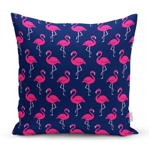 Realhomes Modern Lacivert Zeminde Flamingo Desenli Modern Yastık Kırlent Kılıfı